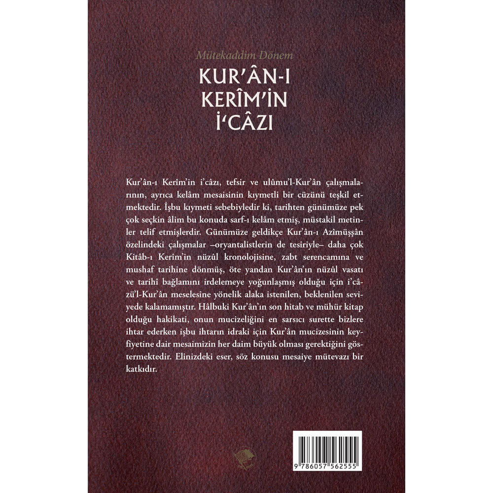 Kur’ân-ı Kerîm’in i’câzı, tefsir ve ulûmu’l-Kur’ân çalışmalarının, ayrıca kelâm mesaisinin kıymetli bir cüzünü teşkil etmektedir. İşbu kıymeti sebebiyledir ki, tarihten günümüze pek çok seçkin âlim bu konuda sarf-ı kelâm etmiş, müstakil metinler telif etmişlerdir. Günümüze geldikçe Kur’ân-ı Azîmüşşân özelindeki çalışmalar –oryantalistlerin de tesiriyle– daha çok Kitâb-ı Kerîm’in nüzûl kronolojisine, zabt serencamına ve mushaf tarihine dönmüş, öte yandan Kur’ân’ın nüzûl vasatı ve tarihî bağlamını irdelemeye yoğunlaşmış olduğu için i’câzü’l-Kur’ân meselesine yönelik alaka istenilen, beklenilen seviyede kalamamıştır. Hâlbuki Kur’ân’ın son hitab ve mühür kitap olduğu hakikati, onun mucizeliğini en sarsıcı surette bizlere ihtar ederken işbu ihtarın idraki için Kur’ân mucizesinin keyfiyetine dair mesaimizin her daim büyük olması gerektiğini göstermektedir. Elinizdeki eser, söz konusu mesaiye mütevazı bir katkıdır.
